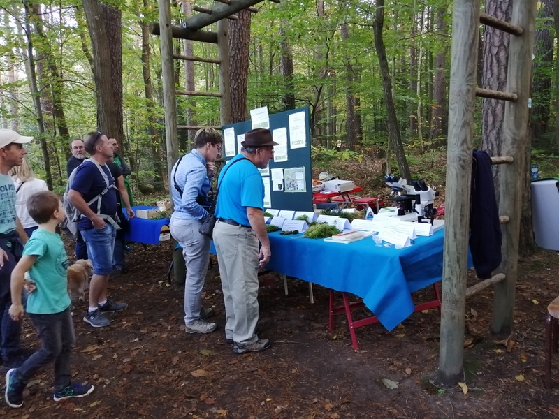 La Société Mycologique du Centre Alsace a convié la Société Botanique d’Alsace à participer au « Buramarik » (marché paysan) organisé le 13 octobre à Dieffenbach-au-Val, une petite commune du Bas-Rhin située à l’entrée de la vallée de Villé. Traditionnellement, la Société Mycologique y présente chaque année différentes espèces de champignons, plus ou moins rares, comestibles ou non. Cette année elle a invité la Société Botanique d’Alsace à participer au « Buramarik ». L’occasion était trop belle : elle a permis de présenter à l’air libre, sous la frondaison des arbres, les mousses les plus communes qui souvent accompagnent bolets, cèpes et autres champignons des bois. Le public a été très surpris d’apprendre que « la mousse », c’est plus de 700 espèces en Alsace ; il a été conquis aussi par la variété des formes de ces plantes souvent méconnues mais, il est vrai, un peu désappointé par leur qualité… gustative !